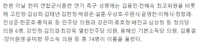 그리고 이런 시민단체 활동을 열심히 하시는 분들이 밀고 있는게 "한미연합훈련중단"